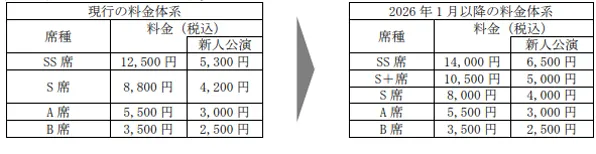 宝塚歌劇公演におきましては、物価上昇等の影響により、公演制作にかかわる各種資材の調達コストや劇場の運営・維持更新コストが以前に比して大幅に増加しております。当社といたしましては、2009年以降、消費税率の変更に際して座席料金を一部改定したものの、長年にわたり、座席料金を据え置くべくさまざまな努力工夫を重ねてまいりました。しかしながら、近年急激な物価高騰が続く中、現行の座席料金を維持することは非常に困難な状況となっており、引き続き宝塚歌劇として華やかでオリジナリティのある作品をお届けできるよう、2026年1月より座席料金の一部改定をお願いすることとなりました。