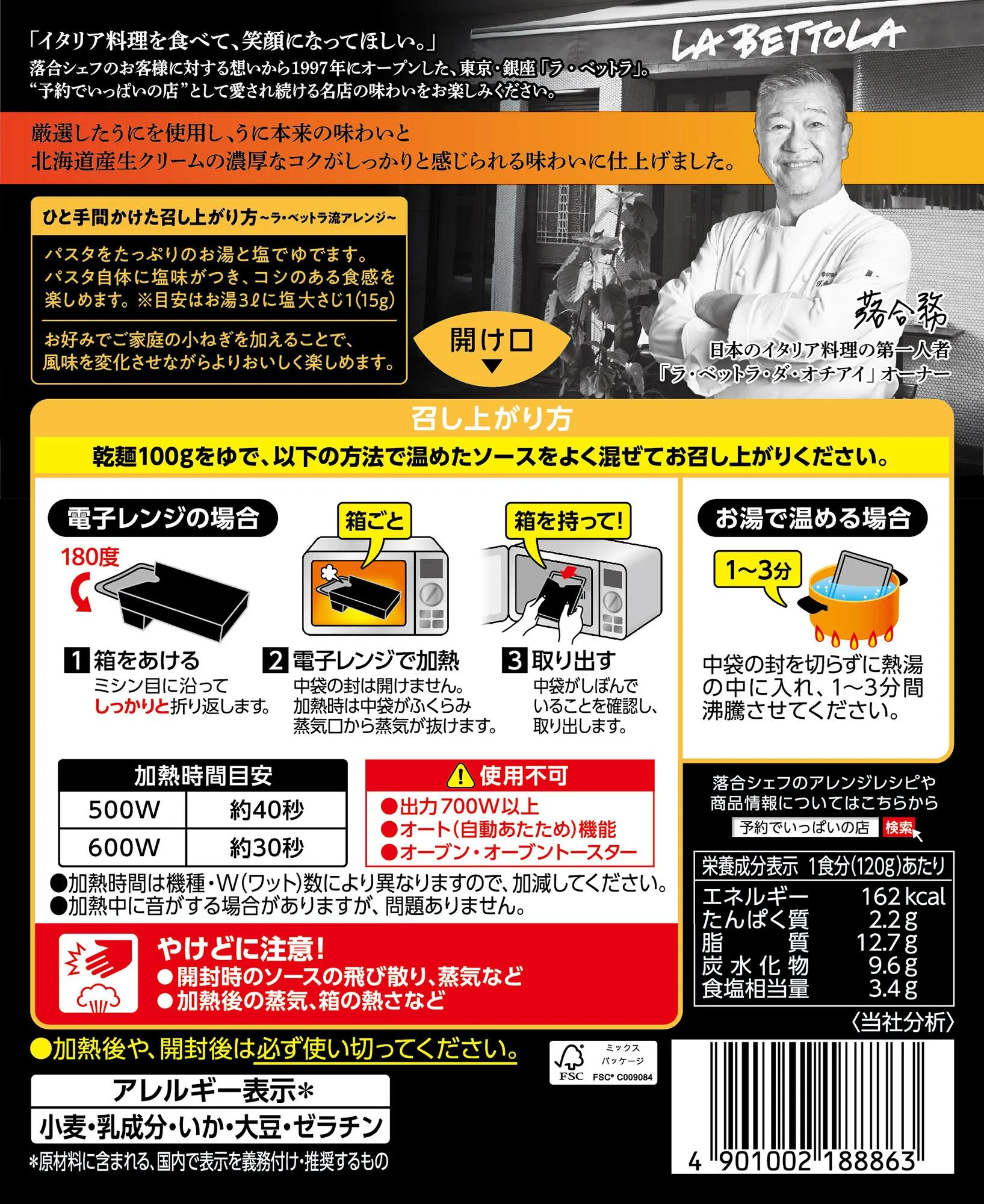 レトルトパスタソース「予約でいっぱいの店」シリーズは、厳選した素材・原料の使用、シェフの技巧などを複合的にかけ合わせ、銀座の名店「ラ・ベットラ」落合務シェフの味作りを体現した一品です。発売後も落合シェフご協力の下、幾度かのリニューアルを重ね、現在では「予約でいっぱいの店THE PREMIUM」ブランドとして展開しています。2001年の発売から今年で24年、来年は節目の25周年を迎える、非常に長くご愛顧いただいているブランドです。「うにのクリームソース」は、ラ・ベットラの看板メニューとして、そして落合シェフを代表する一品として広く知られています。そのメニューをご家庭でお楽しみいただけるように、厳選した素材と、エスビー食品の技術の粋を集めて試行錯誤を重ねた末に完成したのが、今回の新商品です。