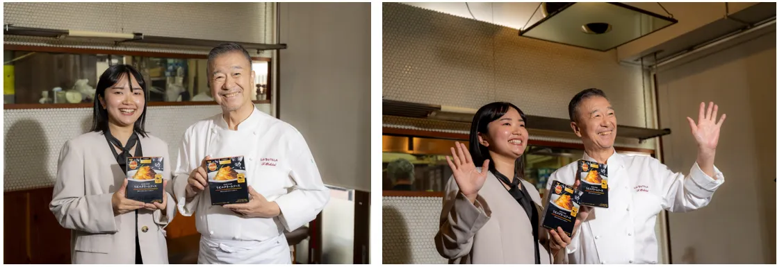 さらに、ロングセラーの本商品について「変えてきたこと、変えなかったこと」を聞かれると、風間は「25年の年月のなかで、使っていた原料や素材が終売してしまい、それにより味が変わってしまうことがありました。でも、落合シェフの味づくりの根幹をぶらさずに、どのように素材を見直せば近付けることができるかということを常に試行錯誤していました」と語り、落合シェフは「エスビーさんとやらせていただいて24年。実質26年ほど前からご一緒しており、当時から『本当に変わらない料理を作るためには変わらなきゃいけない』という話をしてきました。変わらない味を守るためには、少しずつ変えていかないとお客様に進化が伝わらないのです。それをきちんと守っていただいているのがありがたいですね」と笑顔でコメントしました。