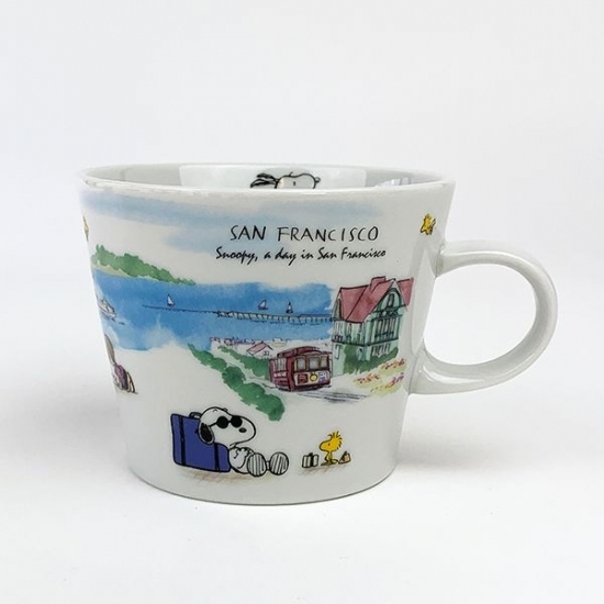 ゴールデン・ゲート・ブリッジも見えますね。観光スポートに溶け込んだチャーリーブラウンたち。見ているだけで楽しくなるマグカップなので、ご家族やお友だちとのカフェタイムも話がはずみそう♪