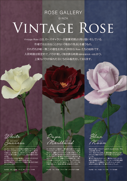 高級バラ専門店として国内・国外各所より厳選した他種多様なバラを取り揃えるローズギャラリーですが、長年ご利用いただいている多くのお客様より別格の人気を集めるバラがVintage Roseと称した3品種。