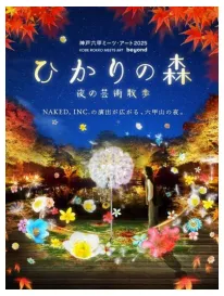 夜間限定の光のアート作品が、ROKKO森の音ミュージアムと六甲高山植物園を幻想的に彩ります。また、会場に設置された作品が光に照らし出され、昼間とは違った表情をお楽しみいただけます。10月中旬~11月中旬には、ライトアップされた木々の紅葉もお楽しみいただけます。