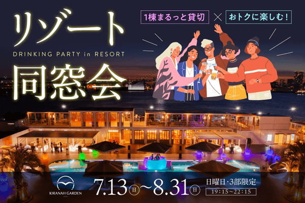 キラナの夏を、もっと楽しく、もっとお得に!土日祝日ナイトタイム限定の「浴衣リゾート女子会」キャンペーン、「リゾート同窓会」プラン登場|期間:7月12日(土)~8月31日(日)【キラナガーデン豊洲】