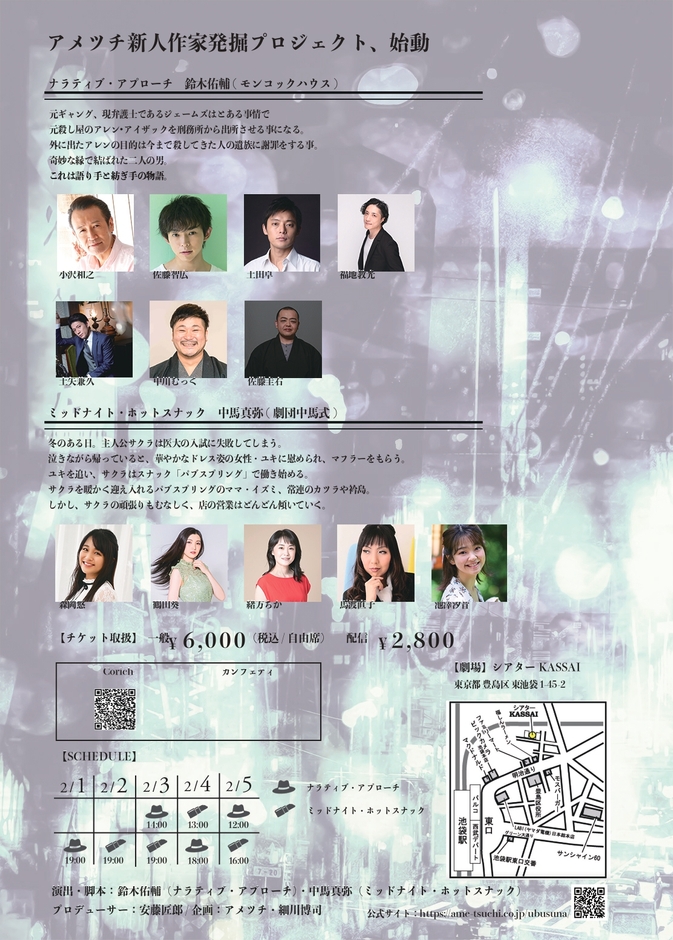 アメツチ新人作家発掘プロジェクト『ウブスナvol.1』 若手劇作家の二作品入れ替え公演 開催決定 カンフェティでチケット発売