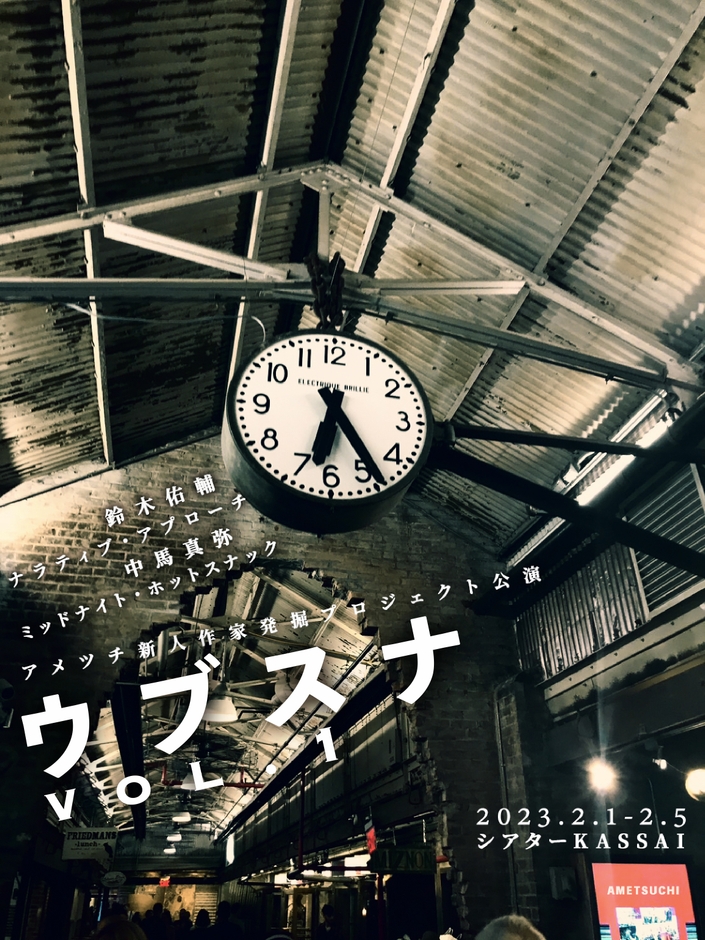 アメツチ新人作家発掘プロジェクト『ウブスナvol.1』が2023年2月1日 (水) ~2023年2月5日 (日)にシアターKASSAI(東京都豊島区東池袋1-45-2)にて開催されます。