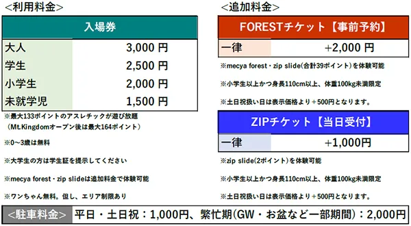 また、新アスレチックエリア「Mt.Kingdom(マウント・キングダム)」のオープンを記念し、エリア監修者の人気動画クリエイター「フィッシャーズ」とコラボした「フィッシャーズ 限定トレーディングカード」を先着5,000名様にプレゼント。Mt.Kingdomにちなんだオリジナルフード、グッズなども販売いたします。