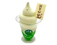 メロンゼリーの上にメロンソフト、ホワイトチョコレートをトッピングしたオリジナルソフト。