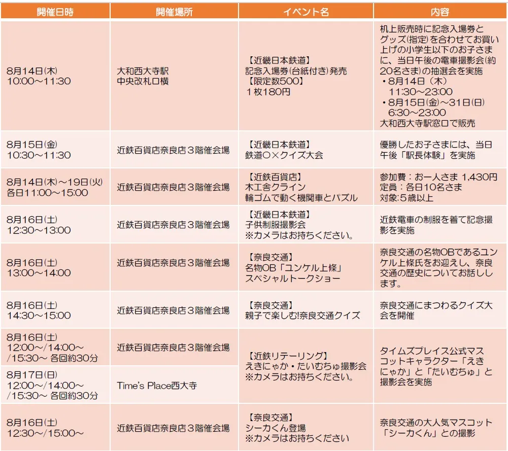 (一部イベントは、大和西大寺駅、Time's Place西大寺で開催します)