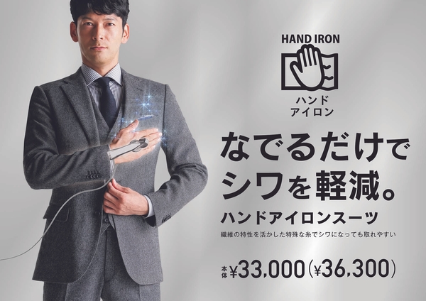 シワ対策の人気シリーズからビジネススーツを新企画 “手でなでるだけ”でシワが消える!? ハンドアイロンスーツを「洋服の青山」で発売