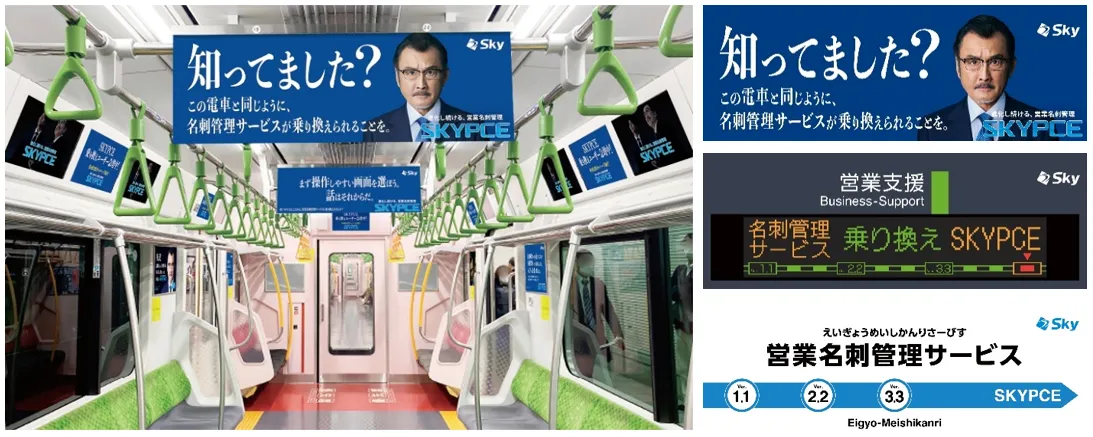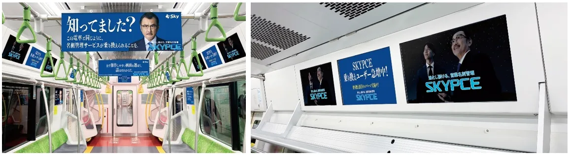 Sky株式会社が提供する営業名刺管理サービス「SKYPCE」。 名刺管理の新常識と、重要性を伝えるメッセージが車内を埋め尽くす!! Sky株式会社「電車を乗り換えるように『SKYPCE』に乗り換えていただくことを期待!」