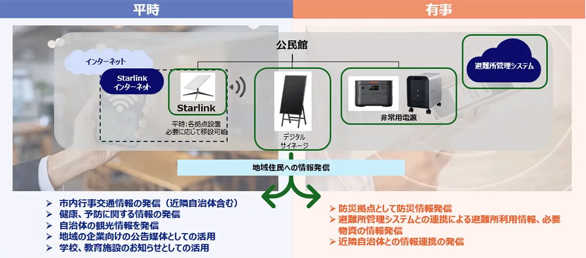 ~有事を見据えStarlinkや避難所管理システム、サイネージなどを平時から公民館などに実装~
