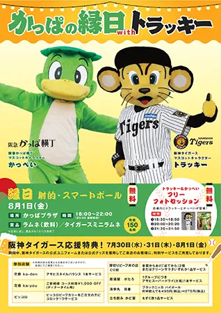 このイベントでは、大人から子どもまで楽しめる縁日コーナーや、阪神タイガースの公式マスコットキャラクター「トラッキー」と阪急かっぱ横丁の公式マスコットキャラクター「かっぺい」とのフリーフォトセッションを実施いたします。