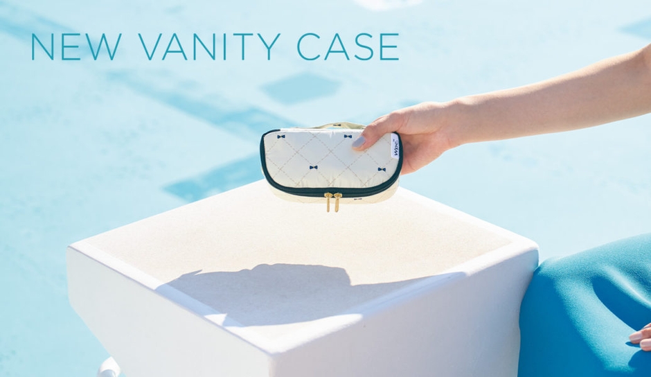 バニティケース仕様の折りたたみ日傘は2021年春夏の新作で全4柄展開。ケース収納時の大きさは縦7cm×横16cmで、傘本体はスマートフォンと同等のサイズ&重量のコンパクト設計。またケースにはスナップボタンが付いており、取り外しができるのでバッグなどに装着できます。開け口も大きく開くので、収納しやすいのも特徴。コスメポーチのような見た目も可愛らしく、毎日持ち歩きたくなるデザインです。