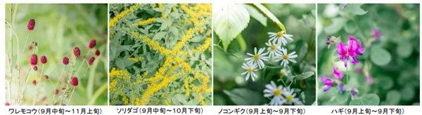アジサイ、シュウメイギク、ユーパトリウム、ノコンギク等の花々やグラス類を紹介予定です。ツアーの最後には秋の草花を摘んでミニブーケを作ります。