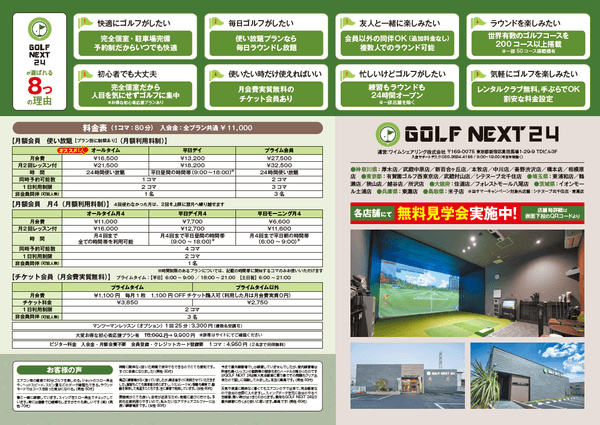 GOLF NEXT 24は、エアコン完備の快適空間で24Hいつでもラウンドや練習が可能!