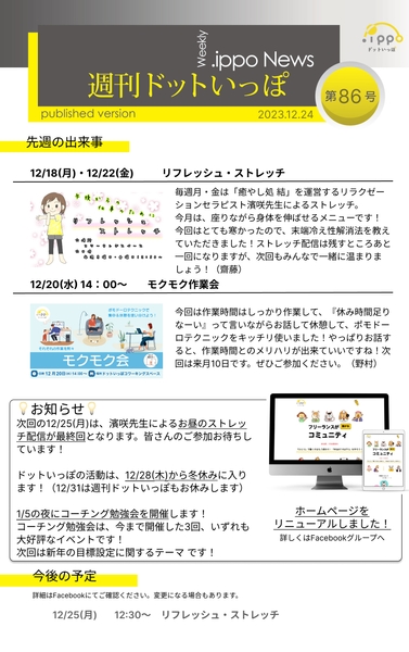 加えて、イベントに参加できなかった人でも、コミュニティ内の活動状況が分かるように、『週刊ドットいっぽ』というコミュニティ内の配信を毎週行っています。コミュニティ内での様々な活動をコミュニケーションのきっかけにして、様々なつながりを作っていただけるよう、今後も工夫を重ねてまいります。