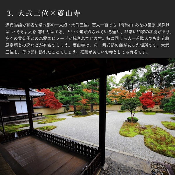 秋の京都は、千年以上も語り継がれる恋物語を思い起こしながら、名所巡りを楽しんでみてはいかがでしょう。