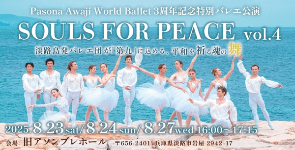 ウクライナ支援プロジェクトにより来日したバレエダンサーや指導者、国内ダンサーで構成している「Awaji World Ballet」の3周年記念特別公演『SOULS FOR PEACE vol.4』を、8月23日(土)より開催いたします。