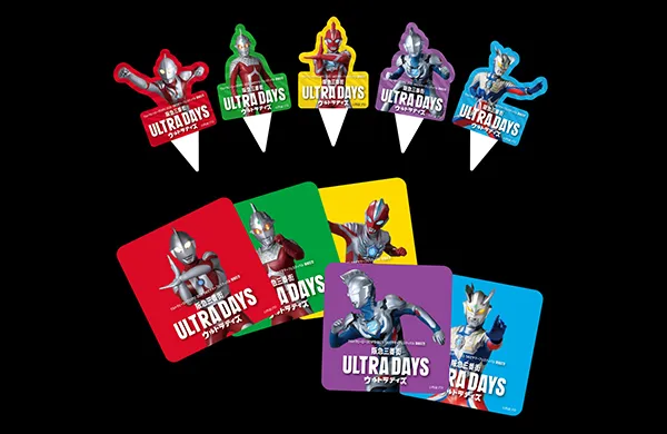 阪急三番街館内で、ウルトラヒーローズのノベルティがもらえる対象メニューを販売します。対象メニューをご注文のお客様には、期間に応じてオリジナルノベルティの「フードピック」または「コースター」をプレゼントします。