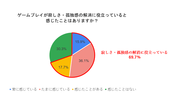 4.約7割(69.7%)が、ゲームを通して「寂しさ・孤独感の解消に役立っている」と回答