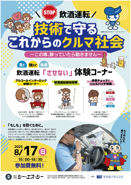 「社会の安全、安心、健康を創造する」という理念のもと、飲酒運転ゼロ社会の実現に向けて取り組む東海電子株式会社(本社:静岡県富士市、代表取締役:杉本 哲也)は、2025年8月17日(日)、鳥栖市の「駅前不動産スタジアム」にて、飲酒運転根絶を呼びかける啓発イベントを開催いたします。