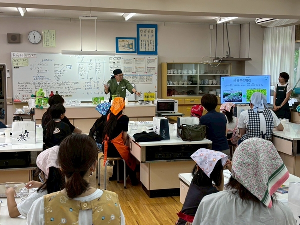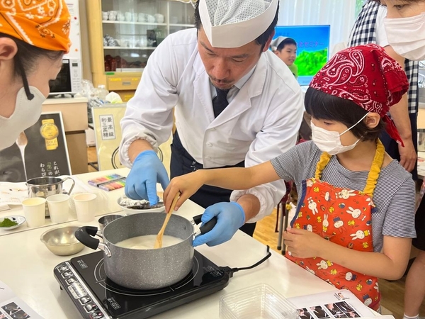 当日はわらび粉から生地を練り上げて形を整える工程に挑戦し、参加した子どもたちは想像以上に力が必要な作業に「大変だけど楽しい!」と笑顔を見せながら一生懸命取り組む姿が印象的でした。伊藤園による日本茶講座では、急須を使ったお茶の入れ方や茶葉の産地、香りの違いを学びました。