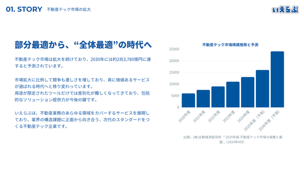 不動産業界向けのバーティカルSaaS「いえらぶCLOUD」「いえらぶBB」は全国40,000社以上で利用されており、利用企業のDXを推進しています。