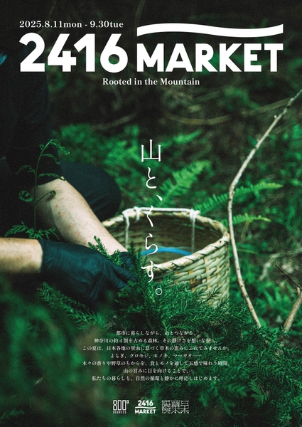 『山と、くらす。』では、軽井沢・岐阜・高知など日本各地の里山をフィールドに活動する「日本草木研究所」の知見を活かし、よもぎ・クロモジ・ヒノキ・マーガオなどの野草や樹木を用いた飲食コラボメニューを展開。さらに、森林由来のクラフト製品やプロダクトも2416MARKET内で販売します。