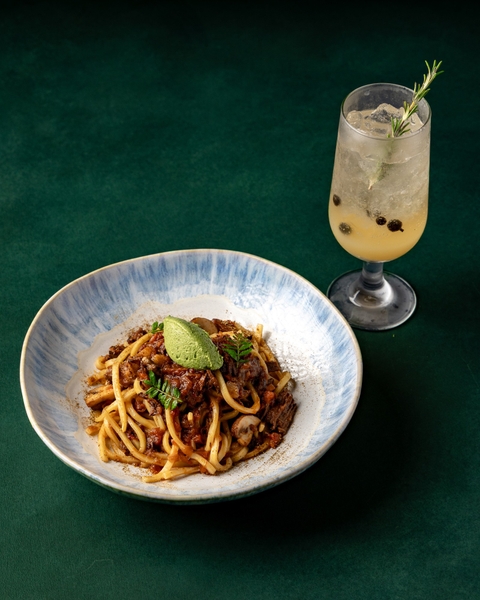 赤ワインでじっくり煮込んだ鹿肉のラグーに、山椒と若葉の清々しい香りを重ねる。アブラチャン、クロモジ、山椒の新芽を使った特製マスカルポーネクリームが絡み、力強さとやわらかさが溶け合う、香り高いひと皿に。