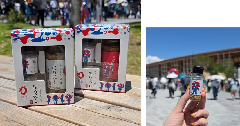 和歌山発の大人気アウトドアスパイス「ほりにし」が、大阪・関西万博オリジナルパッケージで登場!定番の「ほりにし」と「ほりにし辛口」の2種類をご用意。万博会場で味わう様々な「万博メシ」にちょい足しして新たな美味しさを発見する楽しみ方もおすすめです!