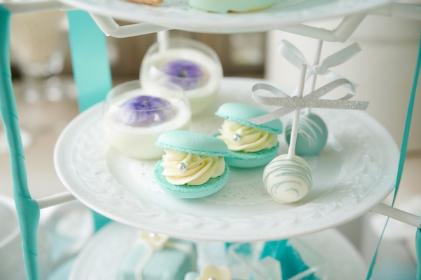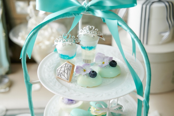 特別な日にふさわしい シャンパンのジュレ・バニラとラズベリーのハートムース・エルダーフラワーパンナコッタ・シトロンフレーバーの”サムシング・ブルー”マカロン・チョコとふんわりスポンジのグラデーションロリポップ・ホワイトリボンのパウンドケーキBOX・ダイヤモンドとサファイアをイメージしたミニャルディーズ