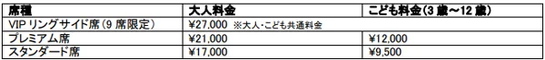 ※VIPリングサイド席の料金は大人・こども共通です。
