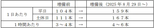 ■新たに『PRiVACE(プライベース)』を設定した2300系車両を3編成増備することで1日あたりの運行本数を平日159本(55本の増)、土休日167本(56本の増)に拡大します