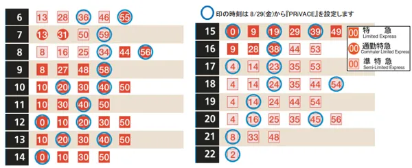 ■2025年8月29日からの大阪梅田駅・京都河原町駅の平日の『PRiVACE』発車時刻表