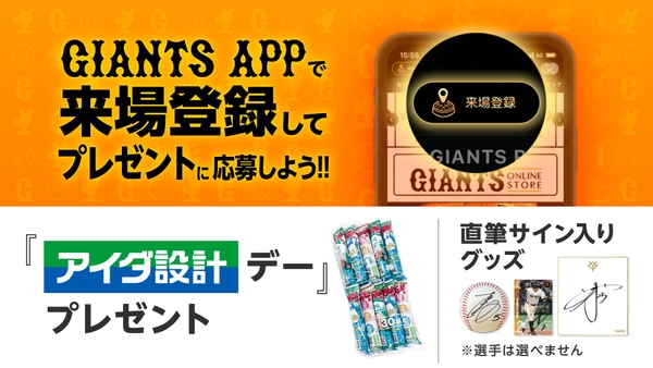 アイダ設計は、読売ジャイアンツのオフィシャルスポンサーとして、今年も東京ドームでの「アイダ設計デー」を記念した特別キャンペーンを実施します。