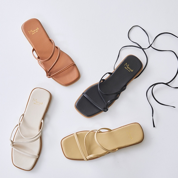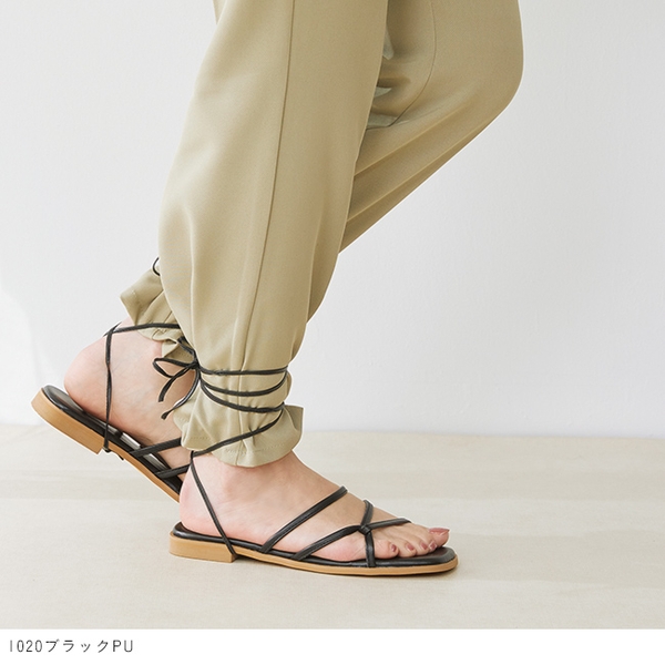 商品名 :menue (メヌエ) 巻き付けストラップ フラットヒール サンダル