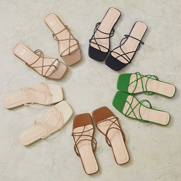 同じストラップサンダルでもトゥやストラップにこだわり作製された多様なラインナップは、なりたい雰囲気を叶える足もとに。