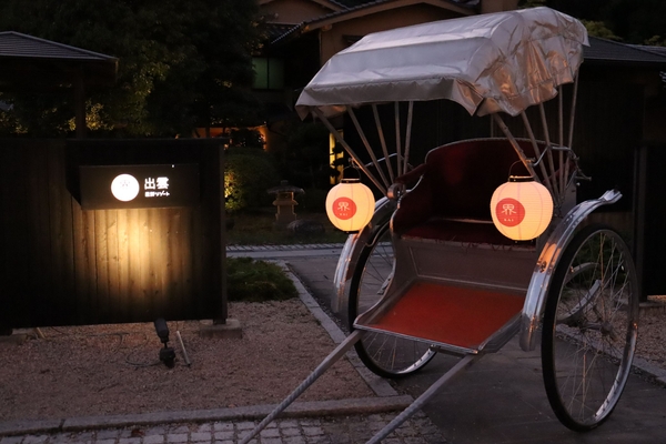 夕食後の20時から、このエリアでは初となる夜桜を楽しむための人力車を運行します。人力車に乗り約1時間かけてゆっくりと玉湯川沿いを回るため、時間に追われることなく夜桜を堪能することができます。また、今回用意する人力車は界 出雲専用の提灯で装飾され、見た目にも楽しむことができます。途中の撮影ポイントでは、写真撮影を車夫が手伝ってくれるため、専用の人力車と満開の桜と一緒に、思い出の一枚をカメラに収めることができます。
