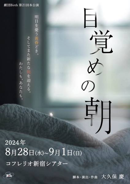 劇団Birth『目覚めの朝』が2024年8月28日 (水) 〜 2024年9月1日 (日)にコフレリオ 新宿シアター(東京都 新宿区 歌舞伎町 2-15-3 新宿KSビル1F)にて上演されます。
