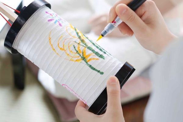 小田原提灯のロビー装飾と絵付け体験
