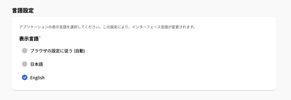 設定画面から言語を英語に切り替えることで、「JAPAN AI CHAT」「JAPAN AI AGENT」「JAPAN AI SPEECH」などの各種サービスが英語で表示できます。