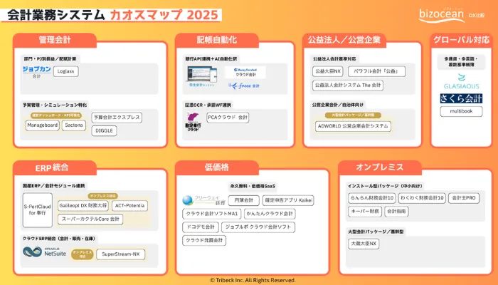 トライベック株式会社(所在地:東京都港区、代表取締役社長:後藤 洋)は、IT比較サービス「bizocean DX比較(ビズオーシャン)」にて、「会計業務システム カオスマップ2025」を2025年8月19日にリリースします。