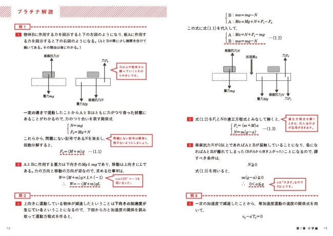 その例題で学んでほしいことや陥りがちな誤答・誤解はもちろん、物理法則の解釈の仕方などにも触れています。