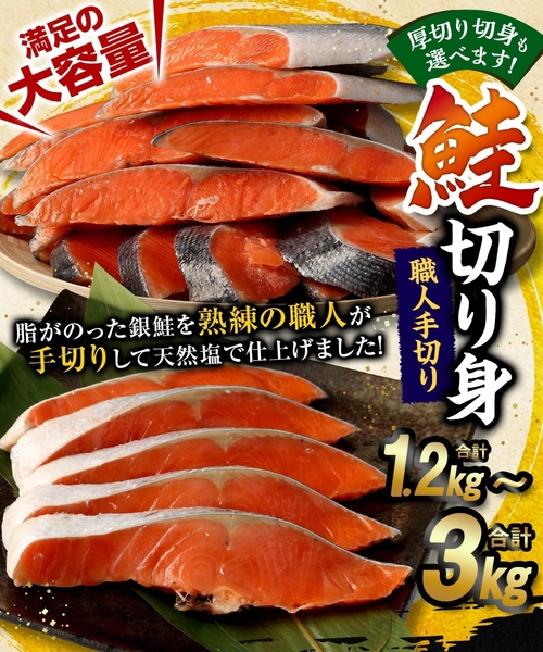 【厚切りも選べる!】鮭切り身 <選べる> 約1.2kg 約2.4kg 約3kg