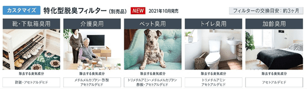 ・用途に合わせて選べる5種類の特化型脱臭フィルター