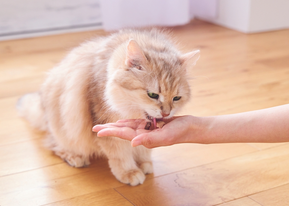 実はペット用のおやつには、犬猫兼用のものも多く、猫ちゃんにあげるときは小さく割って調整している、という声もよく耳にします。