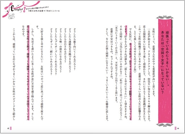 本書を手に取られた方には、「彼から好かれるために頑張ったのに、なかなか素敵な彼が見つけられなかったり、お付き合いが続かなかった女性」が多いと思います。