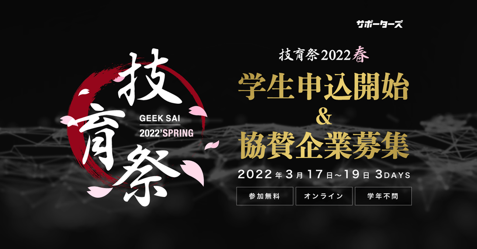 「技育祭」公式サイト:https://talent.supporterz.jp/geeksai/2022spring/