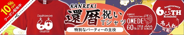 株式会社太陽(所在地:千葉県匝瑳市飯倉台28-11、代表取締役:片岡正徳)が展開する「おもしろTシャツの俺流総本家」では、還暦のお祝いにぴったりな、名入れ還暦デザインTシャツ全15種の期間限定セール を開催いたします!
