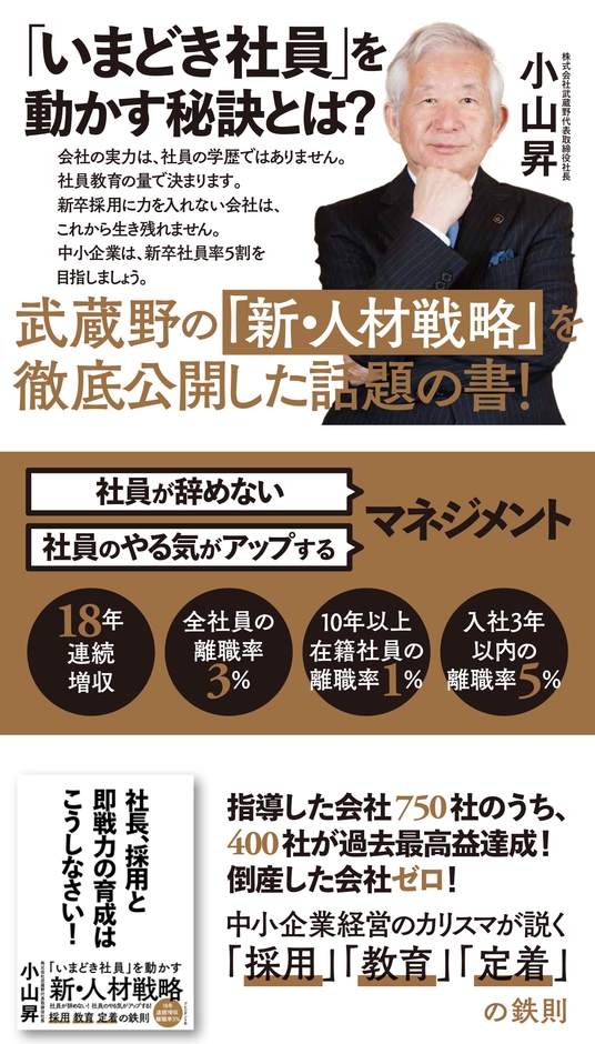 株式会社武蔵野(所在地:東京都小金井市)代表取締役社長 小山昇の最新著書『社長、採用と即戦力の育成はこうしなさい!』が、2021年3月2日(火)にプレジデント社より発売されました。 発売初日からAmazonビジネス書ランキング(マネジメント・人材管理部門)第1位!「いまどき社員」を動かす、武蔵野流人材戦略をご紹介します。